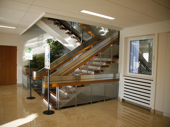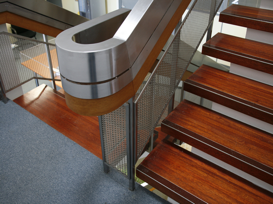 Approvisionnement des cadres en maille rigide pour les escaliers d’ un batiment des bureaux à Paris (France).